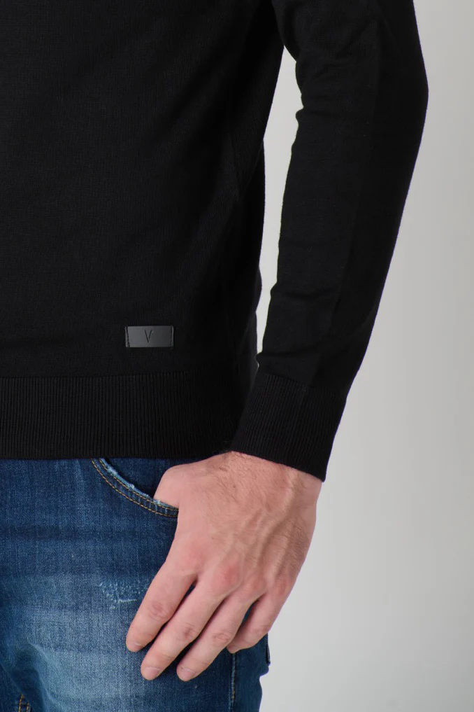 Aggiungi un tocco di magia ai tuoi outfit di tutti i giorni con il Dolcevita Girocollo in viscosa Nero, arricchito dal dettaglio unico della salpa logata V2.