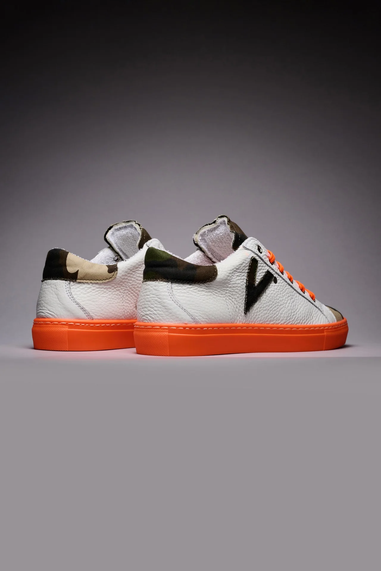 OLYMPIC RAINBOW - Sneakers a suola bassa Bianca con suola e lacci Arancio Fluo e linguetta in tessuto Camouflage