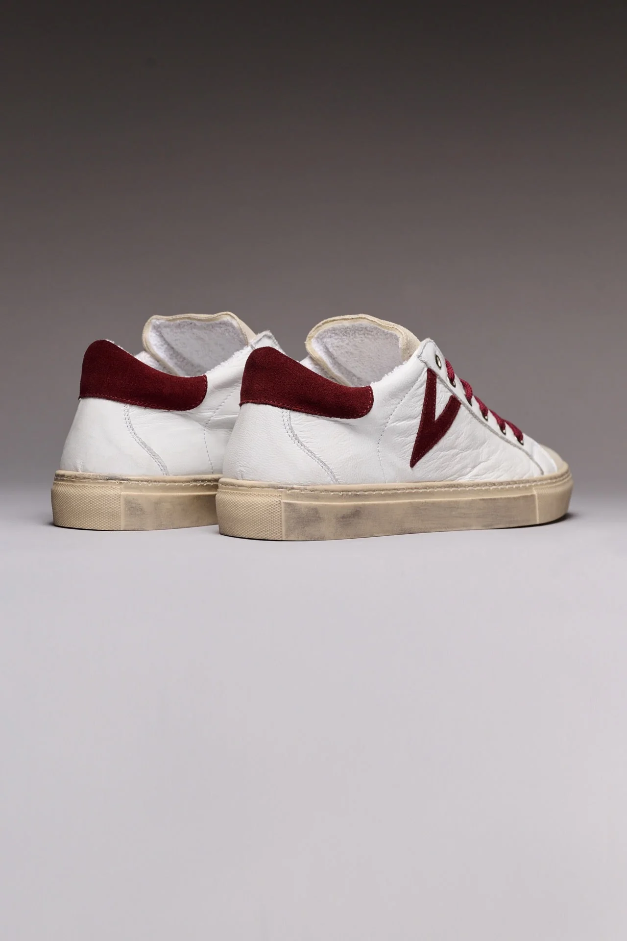 OLYMPIC - Sneakers a suola bassa Bianca con retro e inserto scamosciato Bordeaux