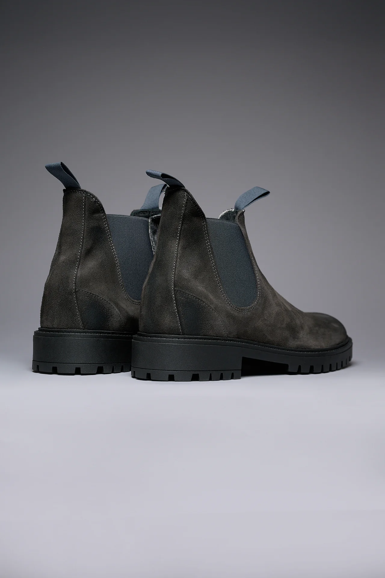 SHERLOCK - Stivaletto scamosciato Antracite con inserto in tessuto V2
