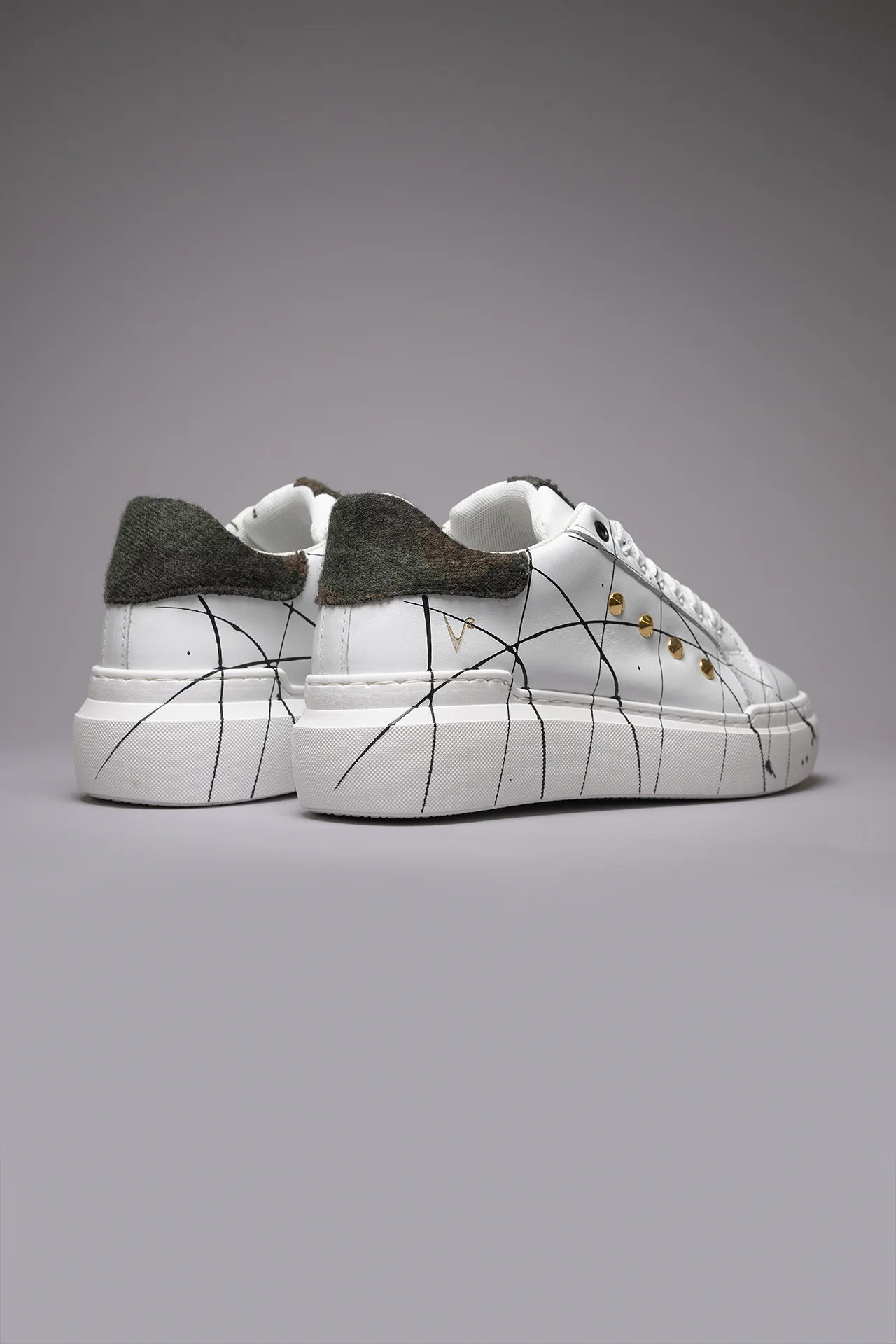 VEGA - Sneakers a suola alta retro Camouflage con borchie e schizzi di vernice